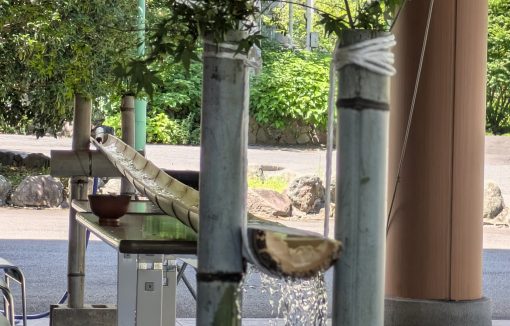 涼を求めて流しそうめん