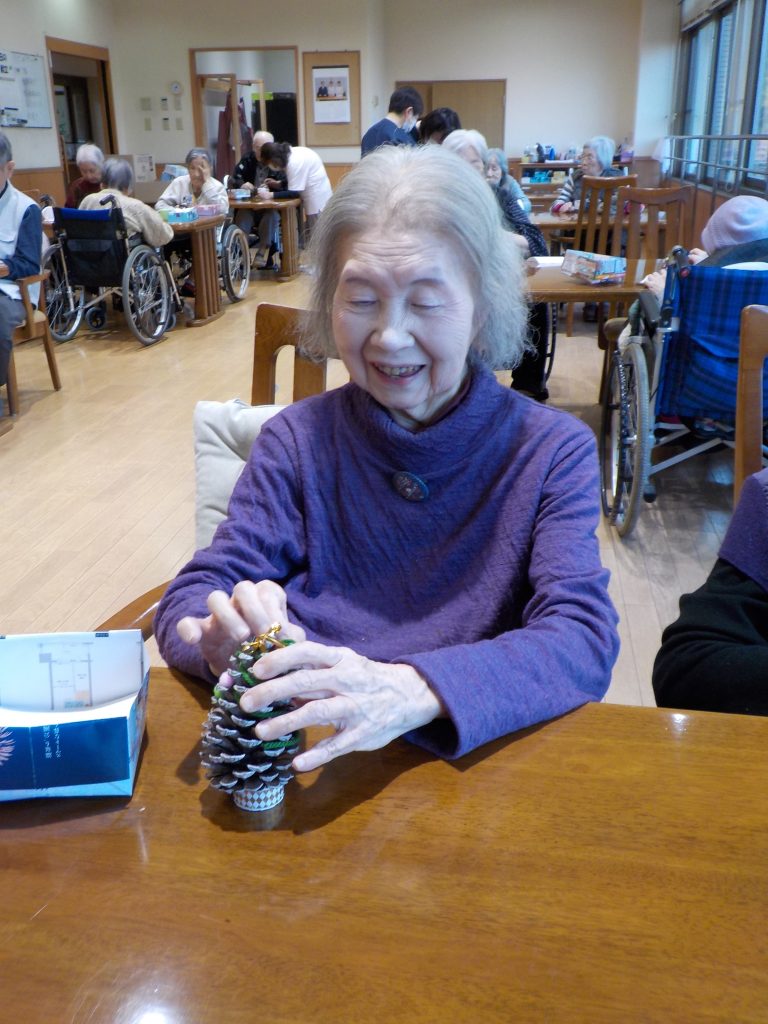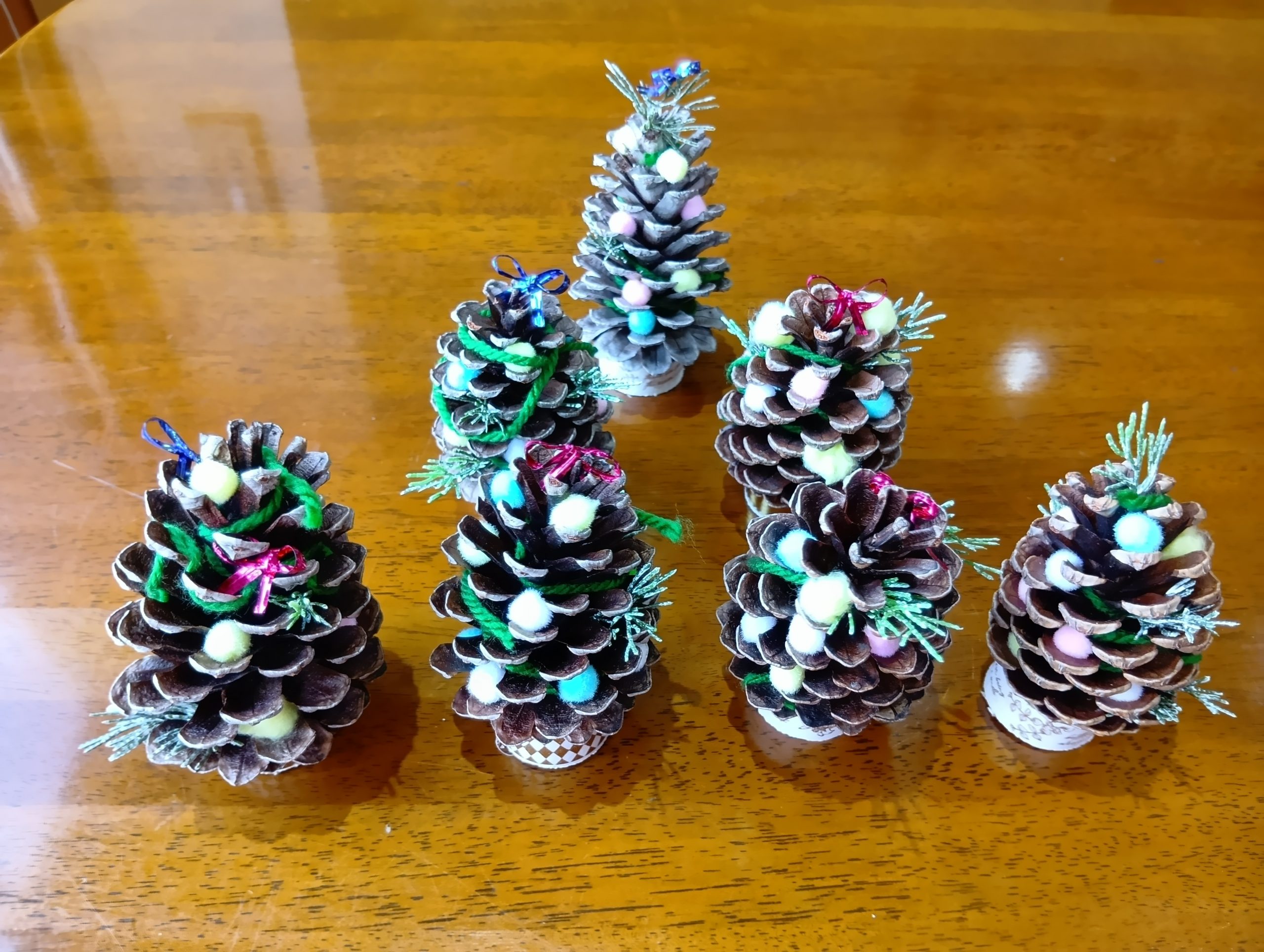 まつぼっくりがツリーになるなんて!! びっくり(@_@) 色んな飾りをつけてオリジナルのツリーが完成です。