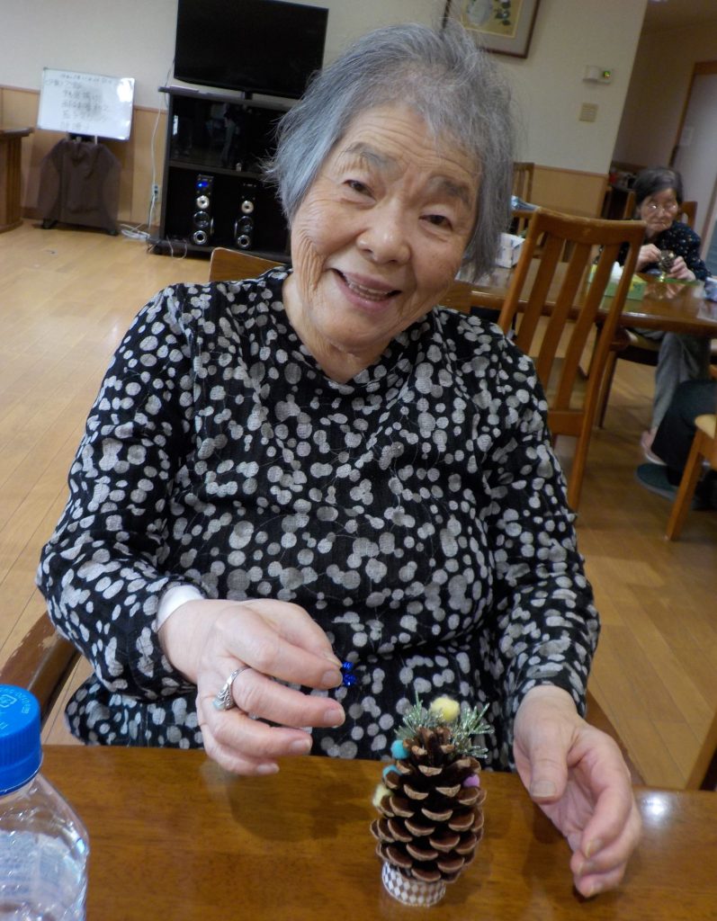 私の事はさておき、今日は松ぼっくりでクリスマスツリーを作りました。