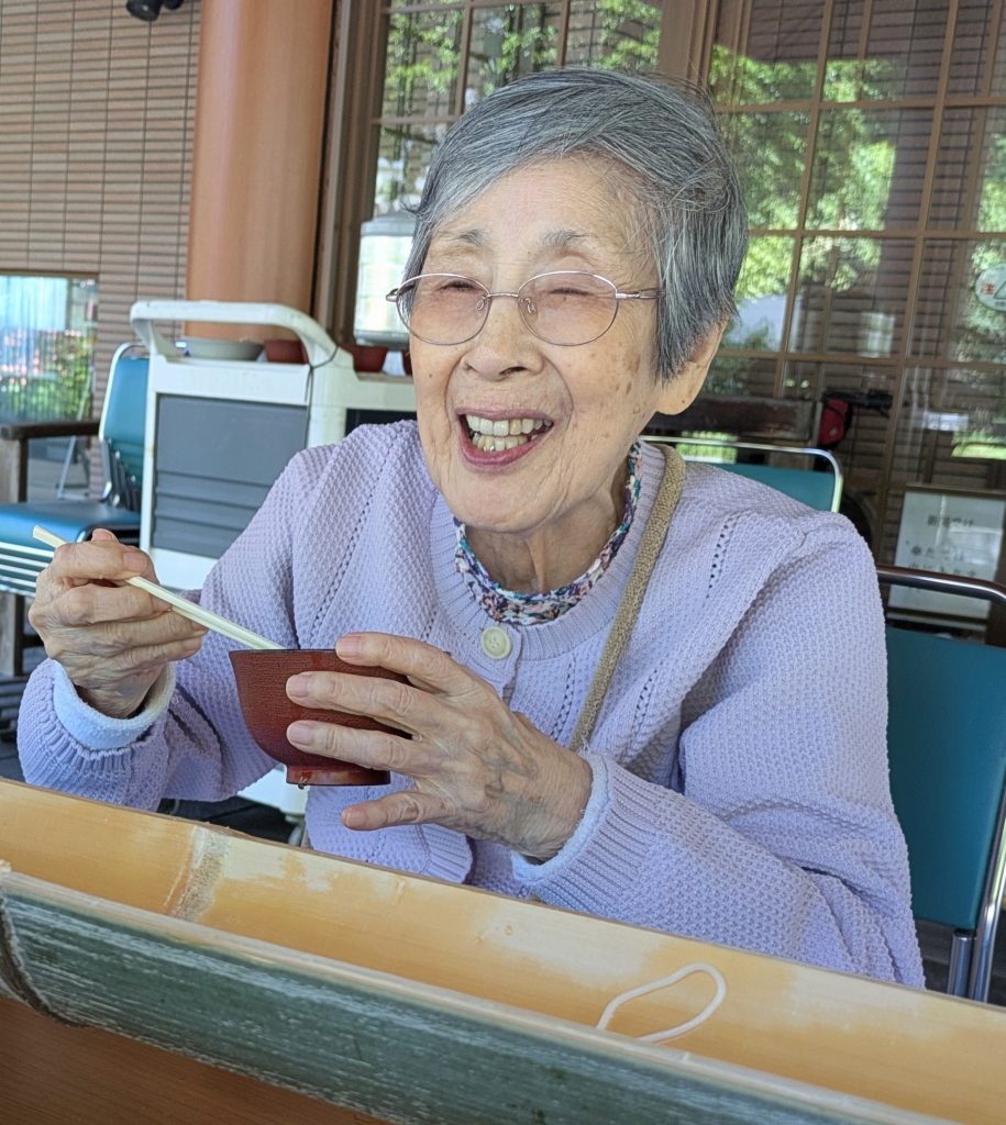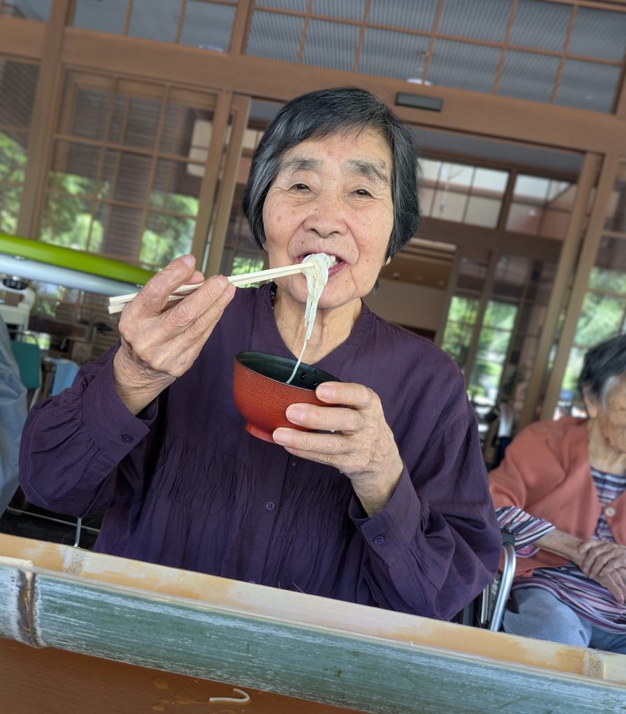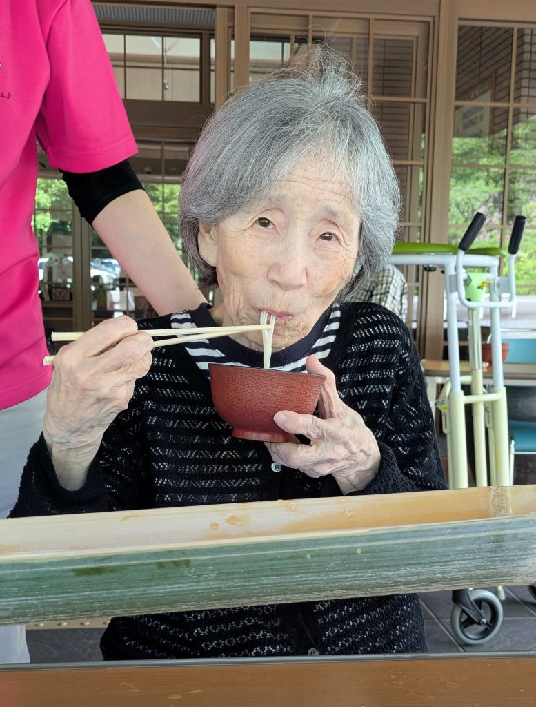 心地良い風がそよそよする中で流れてくるそうめんをお箸ですくって!