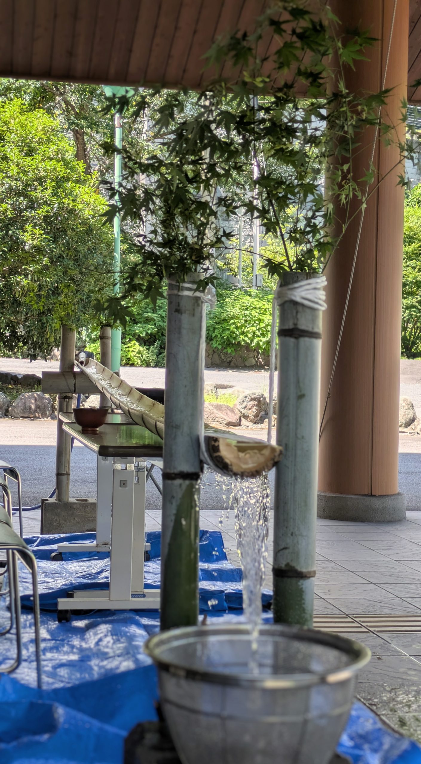 涼を求めて流しそうめん