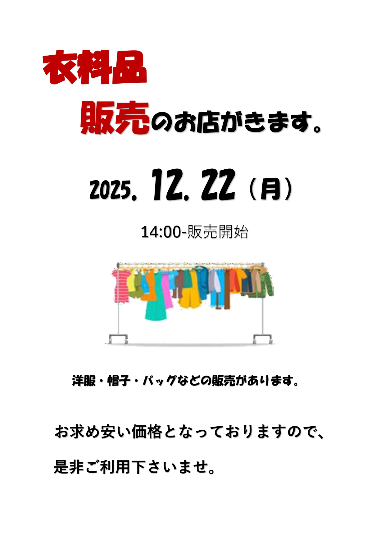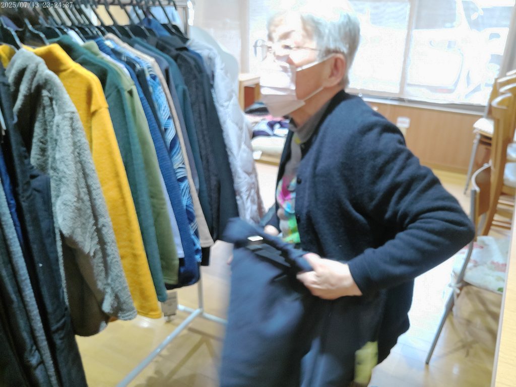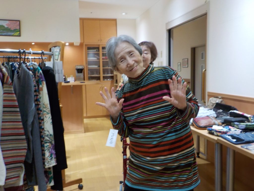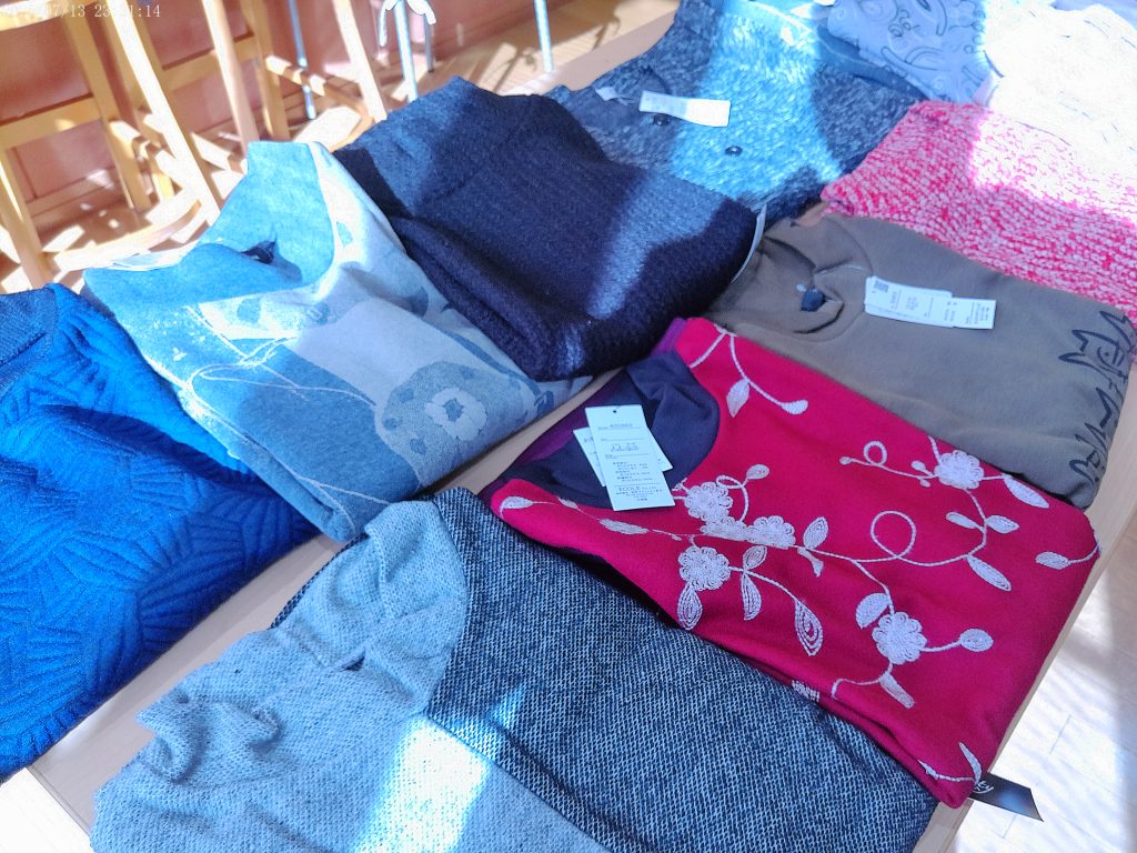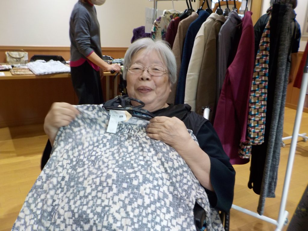 こんにちは!今日は午後より衣服販売の雑貨屋がやってきました。女性陣はおしゃれが大好き💕一番に品定めしたいとの意見が殺到!!ですが、平等です。じゃあどうするか?文句なしのじゃんけんポンです。