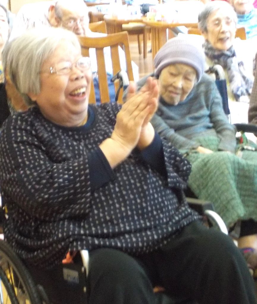 9月16日ホームでは9月、10月生まれの方のお誕生日をお祝いしました。 秋の心地良い季節にお生まれになった皆様です。 「誕生日なんて もうおめでたくないよ」と言いながら たくさんの方々のお祝いの拍手を受けて とても嬉しそうな笑顔をみせてくれています。