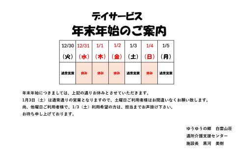年末年始のご案内